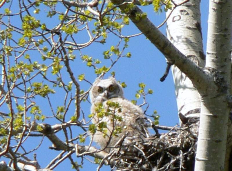 Unsere Uhufamilie hat ihr Nest schon wieder verlassen, von den beiden Kindern hatte bis dahin nur eines ueberlebt. Walter hat es aus der Ferne erwischt: