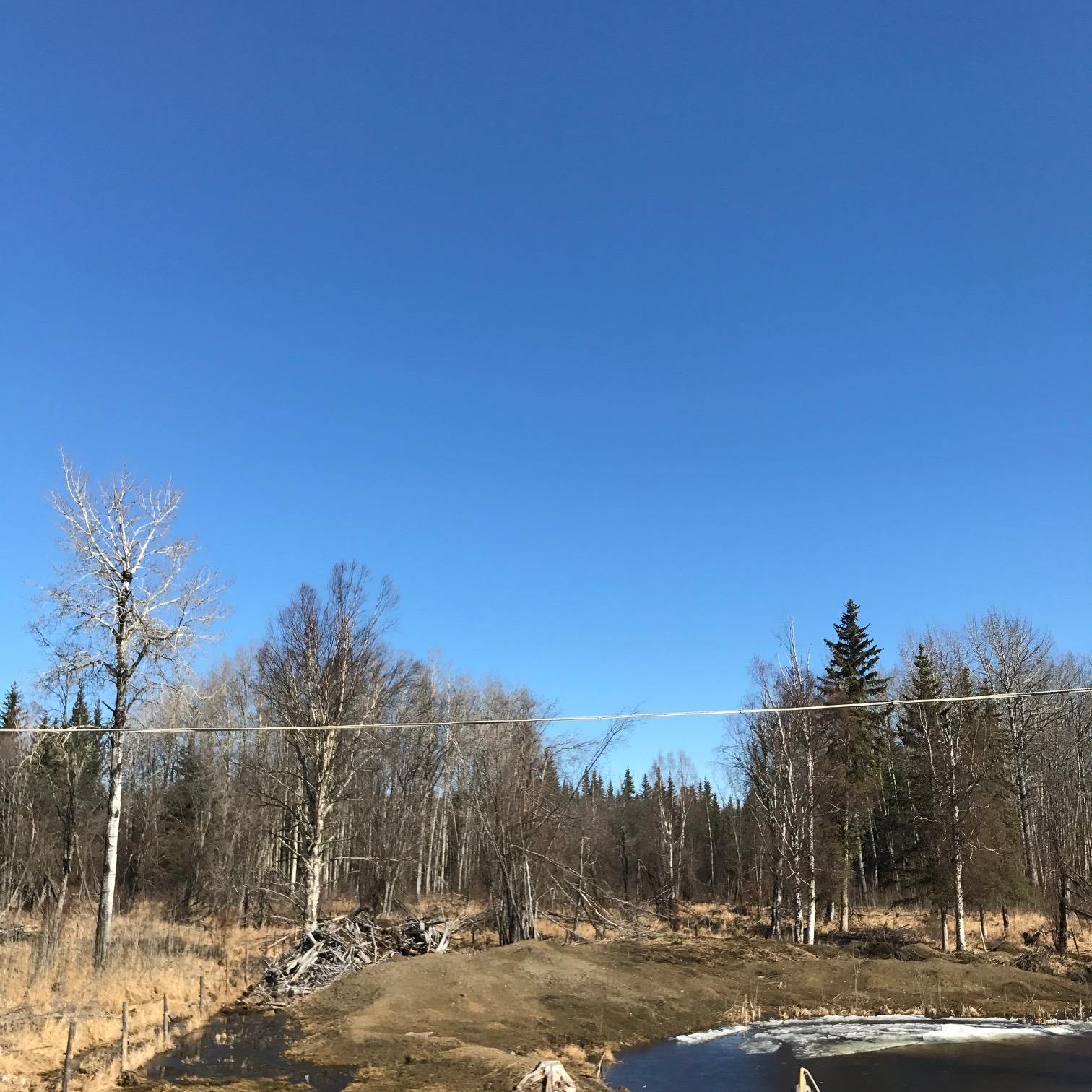 Schon gestern abend war der Himmel klar, und heute morgen gab’s dann endlich wieder „richtiges“ albertanisches Wetter: Knusprig kuehl mit minus 6 oder so, und blauer Himmel ueber Glitzerschnee.