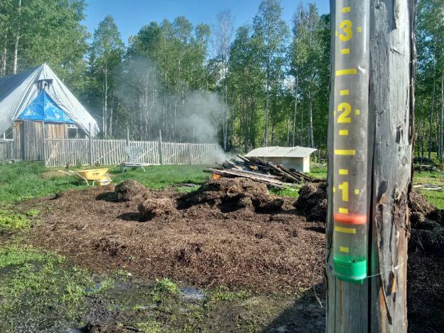 7:26 am says the apple. And gives me a weird typeface – did I select that??? September has arrived, very definitely, with all the trappings. In this part of the world it means possibly cold nights, and those we are getting. Frost causes a certain time and work pressure for us: the last honey has been pulled, now the bees have to be fed in a hurry. So I already mixed 500 kg of the sugar with 300 liters of water, this mix gets poured into special feeding pails that the boss takes out to the bees.