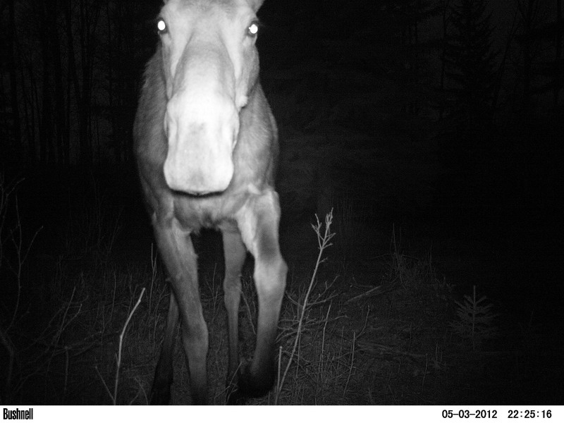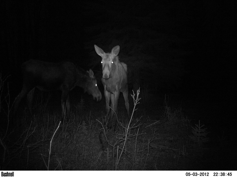 Vor lauter Norwegen und jetzt Honigarbeit bin ich nie dazu gekommen, euch noch ein paar der Bildchen zu zeigen, die die beiden Trail Cameras so hergeben. Bis auf kleine Woelfe und kleine Wapitis haben wir nun alles auch in jung gesehen. Es gibt auch noch eine Elchkuh mit nur einem Kalb. Und dann die Herrschaften, die einen eigenen Artikel bekommen.