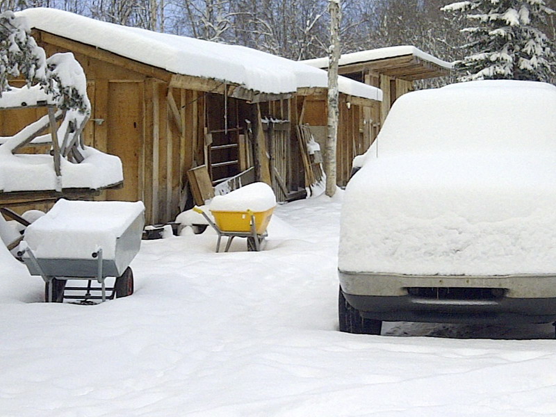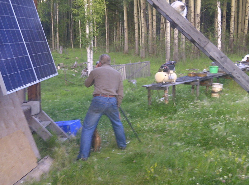 Ueberhaupt sind aufgrund der vielen Tiere, die wir hatten und haben, Geburt und Tod immer ganz wichtige Themen. Jedes Jahr wurden viele Zicklein geboren, und jedes Jahr wurden Ziegen geschlachtet. Nachdem ich in Deutschland fast Vegetarierin war, bin ich hier in Alberta zu einem sehr bedachten Alles-Esser-Tum umgestiegen. Und, moeglicherweise etwas provokant, sage ich ich, dass ein ordentlich erlegtes Stueck Wild (damit meine ich: ein Schuss – umfallt!) das in vieler Hinsicht verantwortungsbewussteste Fleisch ist, das man so essen kann, und in mancher Hinsicht und in vielen Faellen deutlich weniger bedenklich als manches Gemuese. Gejagt wurde also auch. Einmal sogar, in Selbstverteidigung, ging es dem Wolf ans Fell, der unseren Geisslein ans Fell wollte. Schade, aber das war wirklich zu und zu nah.