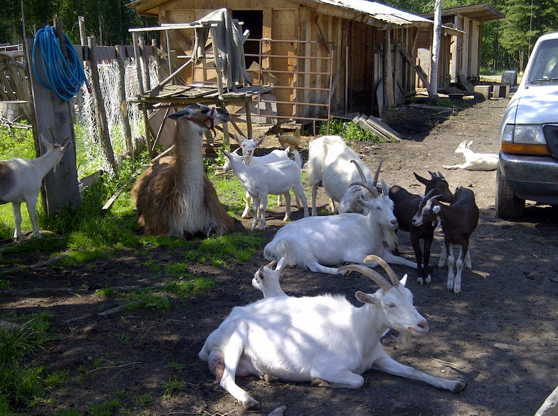 Es gab ein Lama-Baby, das mir immer noch wie „das Kind“ vorkommt, obwohl Hektor inzwischen 9 Jahre alt ist. Kinder, wie die Zeit vergeht. Diese Tiere waren immer mein groesster Spass, sind es heute noch. Zugeben muss ich, dass die Ziegen gleichzeitig auch mein groesstes (Tier-)Problem waren, mit ihrer immensen Neigung zu experimentellen Materialpruefungen, denen fast nichts standhielt. Immer noch hantiere ich mit Zaunelementen und Schuppentueren, die durch die Ziegenhoerner umgeformt wurden. Eine harte Pruefung wahrscheinlich nicht nur fuer meine Ehe.