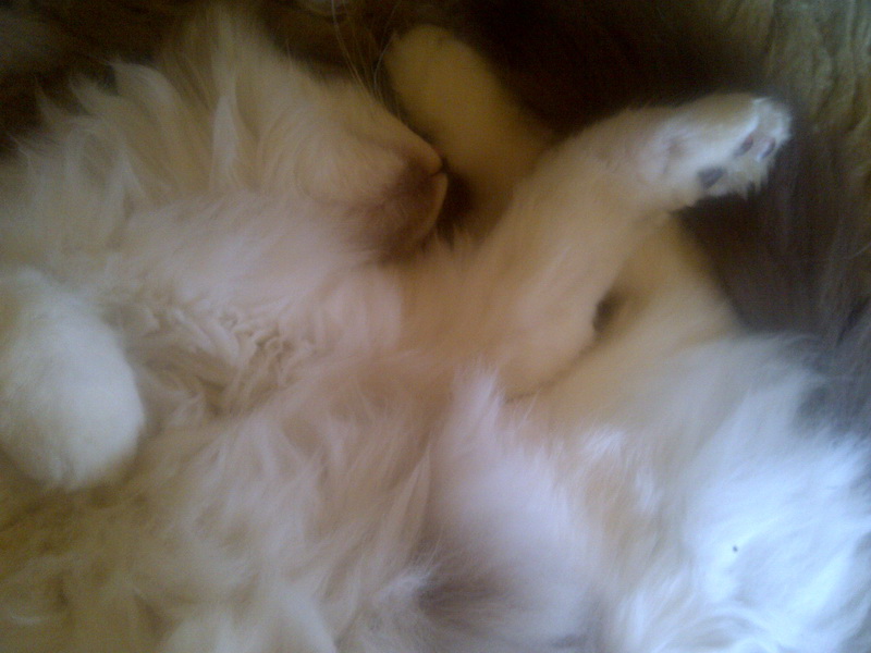Eine andere Erfolgsstory aus der Tierarztpraxis ist das von uns liebevoll so genannte Kitty-Kotzi. In den Fotos unten hat es sich einmal an den Chef geschleimt, ein anderes mal liegt es in einem Blumentopf. Todgeweiht, weil herrenlos und schwanger aussehend. Schwanger aussehen tut es immer noch, obwohl es kastriert ist, aber herrenlos ist es in keinster Weise, hat es sich doch wahrscheinlich auf immer und ewig an den Herrn Chef gebunden, den es mit Haut und Haaren liebt.