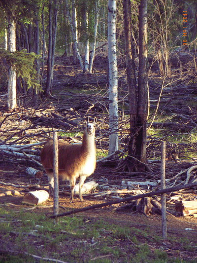 Nur das Lila-Lama ist schon auf dem Posten und laesst sich die Sonne, die heute offiziell um 5:25 aufgegangen ist, auf den Latz scheinen. (Als ich gestern nach Mitternacht das kleine Rote reinliess – das noch eine spaete Checker-Runde drehen musste -, war es nicht wirklich dunkel!)