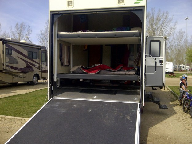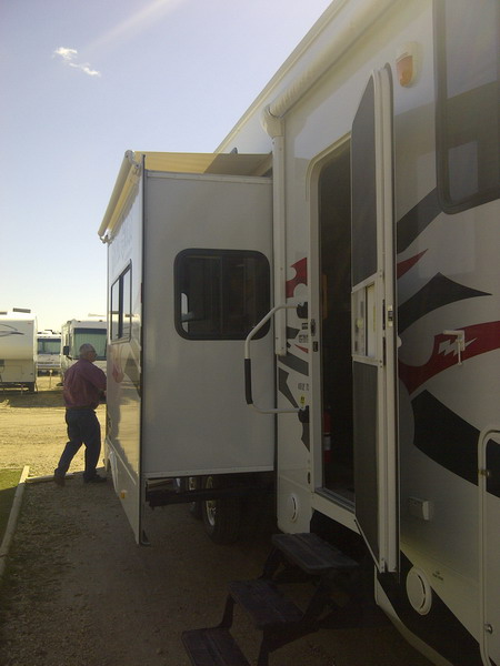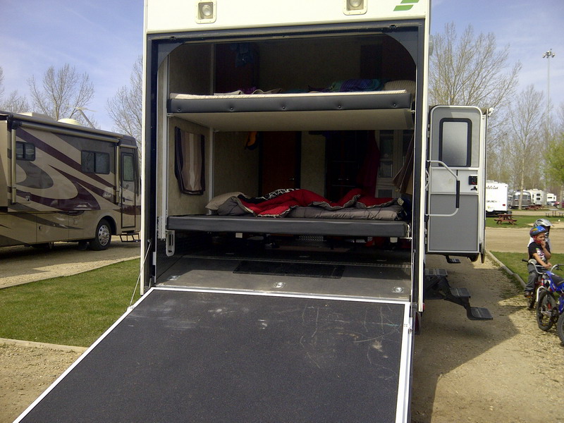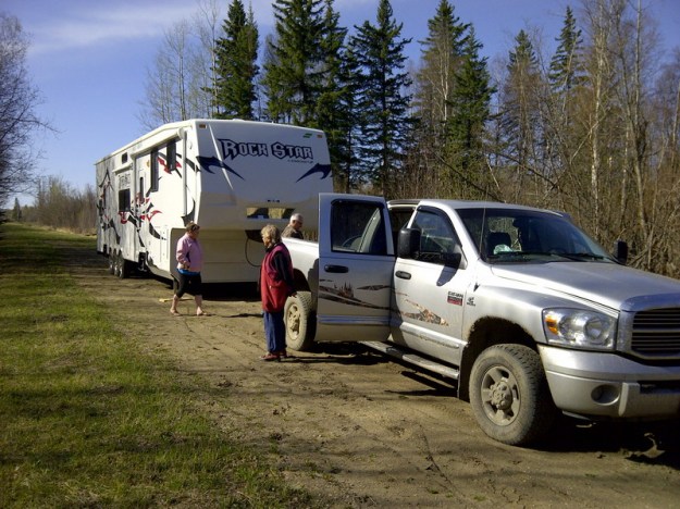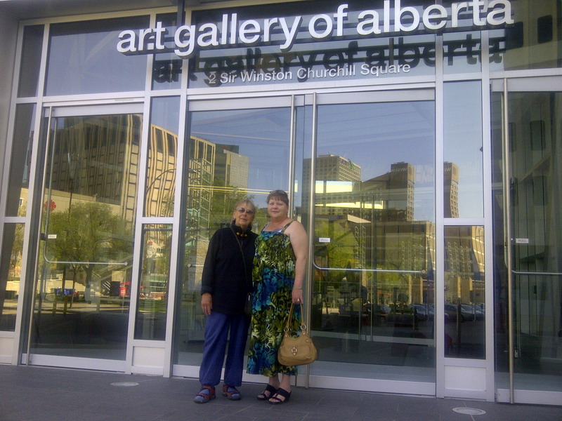 Draussen regnet es wie doof, ich hatte schon einen schoenen Beitrag geschrieben, aber dann hab ich ihn versehentlich verschwinden lassen. Wie ich das hasse! Aber vielleicht ist das symptomatisch, im Rueckblick, fuer den Mai. Und den April. Und den Maerz. Besuch hueben, Besuch drueben, oder hier und da – jedenfalls Besuch. Lange. Jetzt bin ich erschoepft. Aber ich gebe euch Bilder. Zum Beispiel von unserer (Schwiemu’s und meiner) Wohnwagentour nach Edmonton. Chris und David haben so ein Monster-Wohnwagen-Teil, 15 Meter lang, mit Truck 20 Meter. Esszimmer, Schlafzimmer und Kueche werden seitlich ausgefahren. Die Doppelmatratzen im Hinterteil, das auch als Garage fuer das Luxusquad genutzt wird, haengen an Ketten und werden elektrisch rauf und runter gefahren. Es gibt ein Gaesteklo. Die Campingplaetze, die man mit solchen Gefaehrten ansteuert, sind Staedte mit allen Annehmlichkeiten. Frischwasser, Abwasseranschluss, Strom und der Rasen vorm Haus werden geliefert. Ebenso Unmengen von Nachbarn. Es gibt hier Menschen, die gar kein Haus mehr haben, sondern nur neo-nomadisch durch die (nordamerikanische) Welt reisen. Es war ein Erlebnis. Wiederholen muss ich es nicht. Das schoenste war fuer mich der Besuch der Art Gallery in Edmonton.