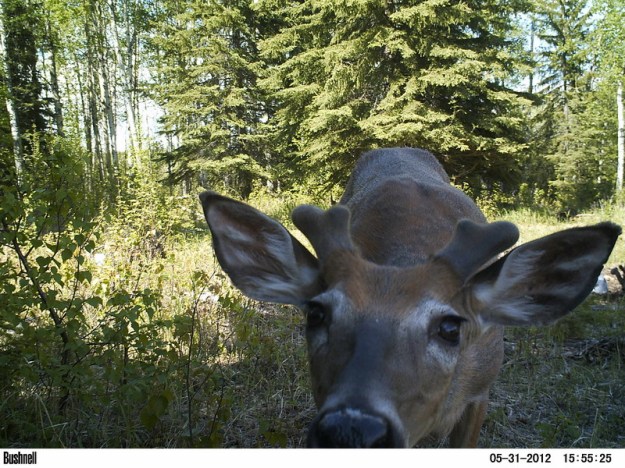 Der Diensthund ist Dundee, ein Red Heeler (nehme ich mal an). Dundee ist sehr diensteifrig, wie sich das gehoert. Anfangs war mein Job noch sehr theoretisch, und Dundee hat mir immer nur im Corral nebenan, ohne meinen Einfluss oder mein Kommando, vorgefuehrt, was er so alles kann. Kuehe auf einen Klumpen treiben. Kuehe durch ein Tor wandern lassen, in Ecke, in eine andere Ecke, zurueck durch das Tor. Das geht mit einem ganzen Trupp, aber auch zum Beispiel mit dem durchaus beeindruckenden nachtschwarzen Bullen als Solonummer bzw. Pas de Deux. Vor Dundee hat man bittesehr Respekt. Haben die Kuehe, hat die Katze, nur die Ziegen, die haben’s noch nicht akzeptiert… Leider weiss ich nicht, mit genau welchen Kommandos Jim seinen Hund steuert, also arbeitet Dundee ein wenig unabhaengig. Aber heute habe ich zum ersten Mal allein gefuettert, und da fand ich ihn schon klasse. Zum Beispiel habe ich das Tor geoeffnet, und Dundee hat dann klar gemacht, dass man als Kuh da bitte nicht durchgeht. Und dass man gefaelligst auch mir als Fussgaengerin Platz macht. Das hat mir ziemlich gut gefallen. Insgesamt habe ich heute 12 Rundballen durch die Gegend kutschiert. Manche im Zweierpack, manche einzeln. Und 1A in die Rundraufen abgeladen. Jawoll. Zwei sogar in so eine grosse Rechteckeraufe, gleichzeitig und zielgenau. Ich fand mich zieeemlich klasse. Dundee hat mich bei jeder Tour begleitet, wobei er auch immer noch Zeit fuer ein eigenes Projekt findet und hin und wieder im Wald verschwindet oder einen geringfuegig anderen Weg geht, weil es anscheinend wichtige Dinge zu erledigen gibt. Und dann sind wir noch quer ueber die Wiesen, durch den Wald und ueber eine Heuwiese bis fast an den See getuckert, um nach der Traenke bei der dritten Gruppe Kuehe zu schauen. So ein richtiges kleines Treckertourchen (es gibt kein oe-ue, oder?). Als wir aus dem Wald auf das grosse Heufeld kamen, stand da eine Gruppe von zwoelf Hirschen (das waren mal dreizehn, das weiss ich, denn der Herr Chef hat einen rausgeschossen, der ist jetzt in unserer Truhe). Dundee nahm Mass und beschloss, dass die zusammengetrieben und irgendwohin gehoerten. Und ab ging die Post, im weiten Bogen, so dachte er sich anscheinend, um die Hirsche rum und dann Richtung Traktor oder Corrals oder was weiss ich wohin mit ihnen. Hirsche lassen sich aber nicht gut hueten, das haben wir dann beide schnell verstanden. Sind einfach zu flott, die Dingerchen. Wissen nicht, was sich gehoert, wenn Dundee angeflogen kommt.