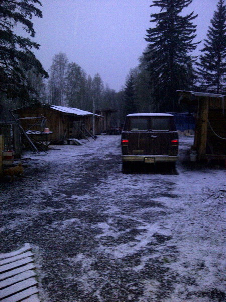 Na, und dann bietet sich mir jetzt die Moeglichkeit, die viele Albertaner nutzen: Ich kann fuer den Winter in den Sueden gehen. In meinem Fall zwar nur vier Kilometer und nicht viertausend oder so. Aber Sueden nichtsdestotrotz. Die Frau des Bauern hat ein kleines Haeuschen mit in die Ehe gebracht, das ungenutzt rumstand und mich schon lange rief. Durch unseren Deal habe ich nun eine sehr nette Rueckzugsmoeglichkeit. Es gibt zwei funktionierende Tueren, gute Fenster, einen Pioneer Maid Kuechenherd, der gleichzeitig auch ausgezeichnet heizt, einen pflegeleichten Laminatfussboden, eine Einbaukueche, Einbaukleiderschraenke, eine vorinstallierte Solaranlage, leider im Moment mit demolierten Batterien und ohne Panels, einen Wassertank (!), den ich aber nicht nutze. Ich sag’s euch, luxurioese Sachen!