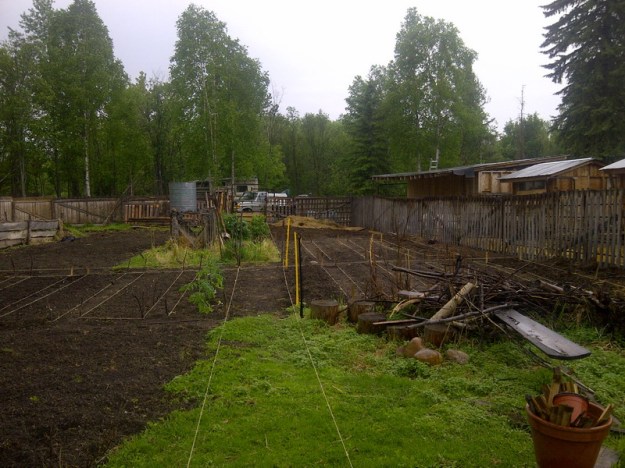 Und hier ist das Ergebnis des gestrigen Arbeitstages im ersten Sonnenlicht: Gartenzaun ist fertig. Nix mehr Ludwig in den Kartoffeln, und keine Ziegen mehr in den Himbeeren. Fuer letztere kommt vielleicht diese Hilfe zu spaet, aber die Kartoffeln sind noch nicht im Boden fuer dieses Jahr. Ueberhaupt ist noch nix im Garten ausser Geruempel vom vorigen Jahr. Es wartet eine Herkuleanische Aufgabe auf mich, aber ich bin streckenweise optimistisch. Es ist schon ein bisschen wie ein weisses Blatt Papier, wenn auch mit Flecken drauf…
